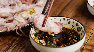 而压轴登场的白灼鱿鱼,由于卖相过于生猛,仿佛打败非沿海地区人士的终极Boss一般,终于引发了一场小型抗议。