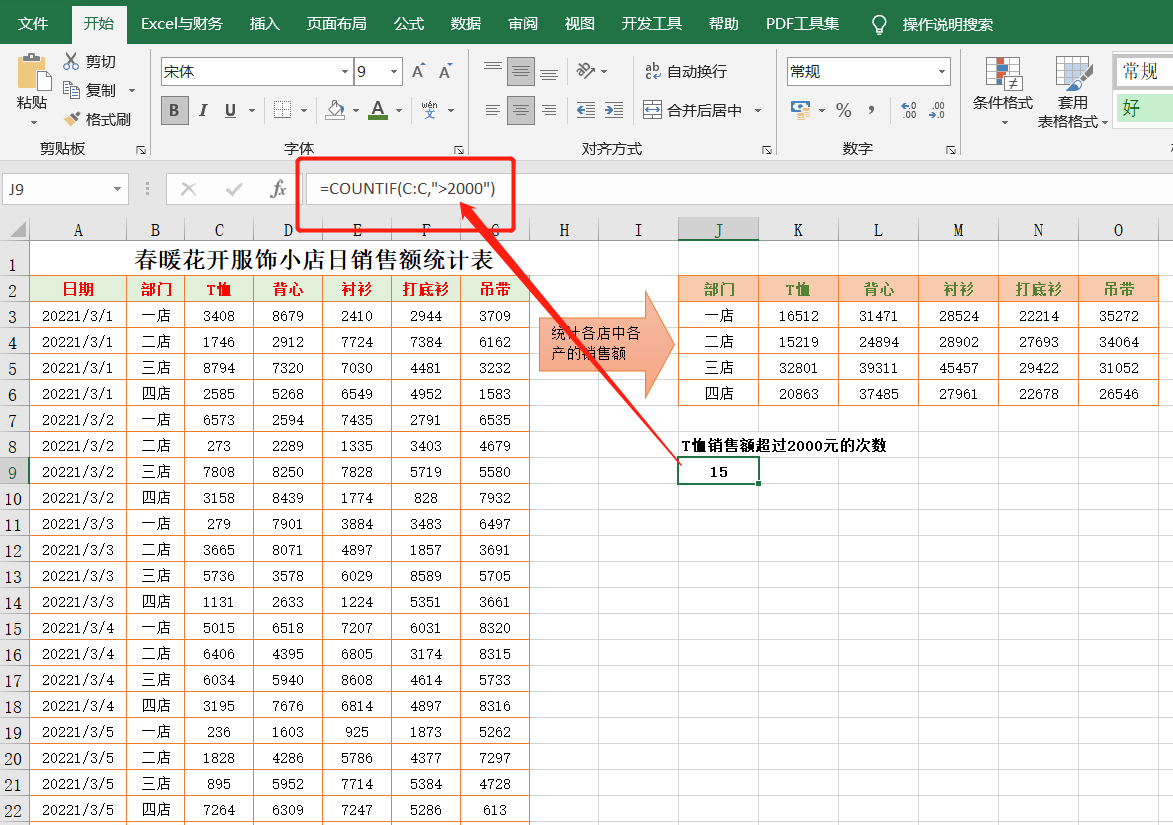 在J9单元格输入公式:=COUNTIF(C:C,">2000")
