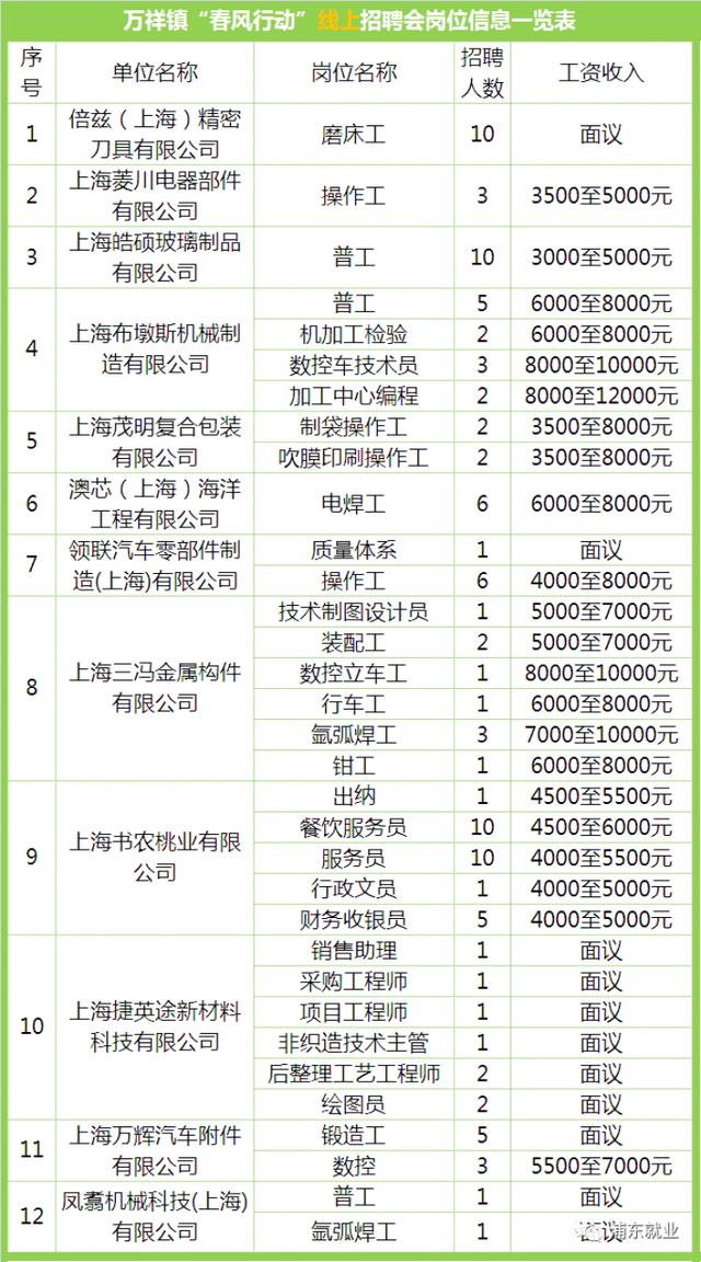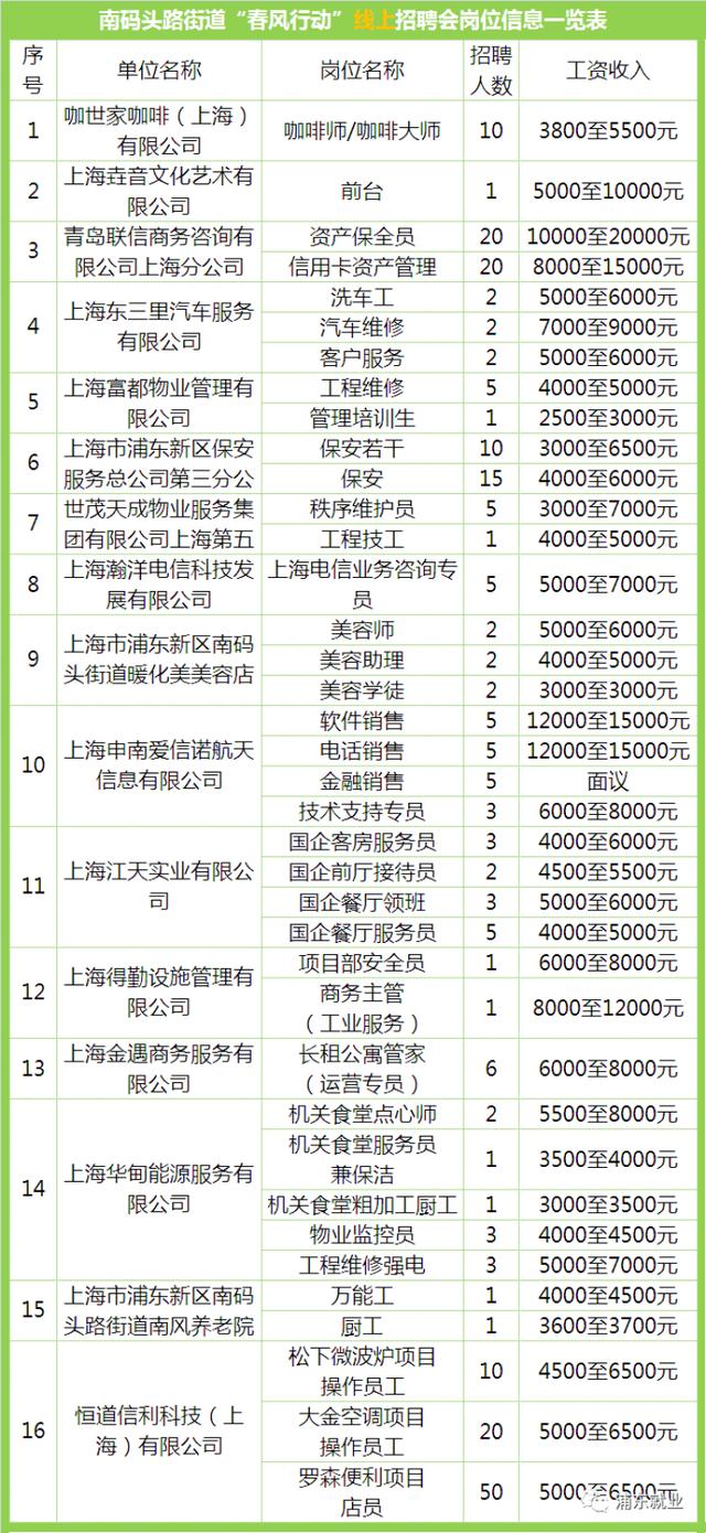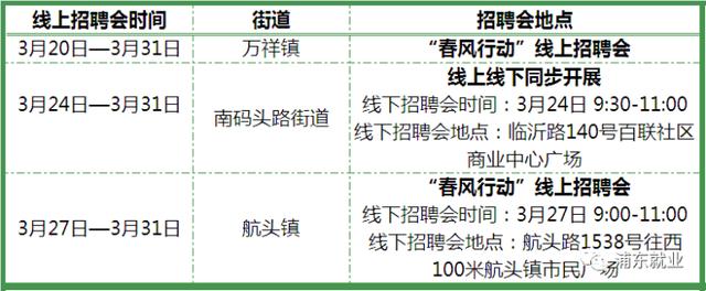 此外,下周万祥、南码头、航头“春风行动”线上招聘会即将开启 ,其中南码头、航头同步设立线下招聘会,预计线下127家企业招聘2000余人,欢迎前来应聘▼