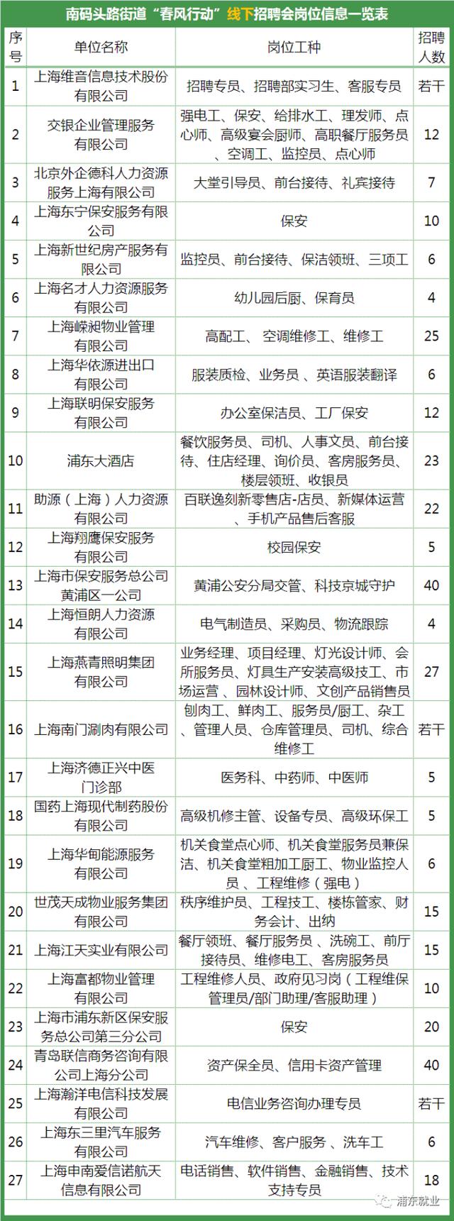 南码头招聘会部分企业预告