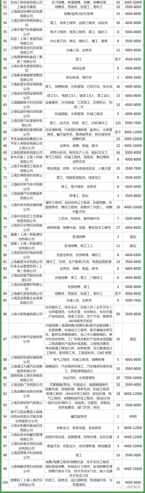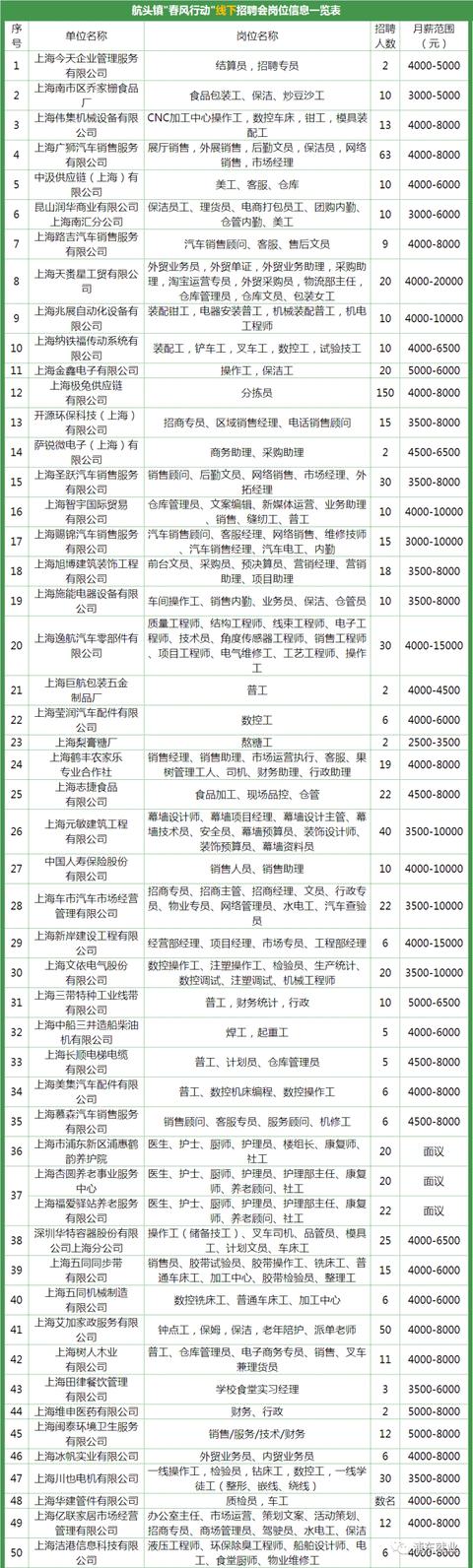 航头招聘会部分企业预告