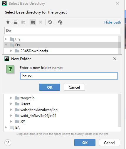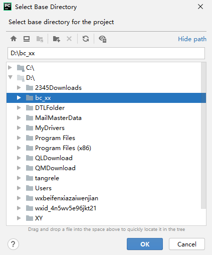演示内容:项目文件存储在D盘的bc_xx目录下面。