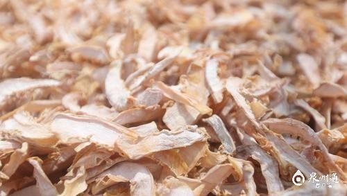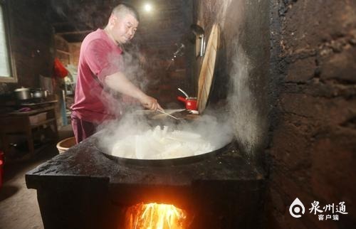 而在安溪县芦田镇芦田镇内地村内廖角落, 连日来,每天天刚亮,村民杨金山就上山挖笋。杨金山家有20亩毛竹林地,清明过后春笋疯长,他就乘嫩采挖出来,加工制作成笋干。“竹笋采挖从清明忙到谷雨,大约要挖上半个多月。“笋早上挖,当天就得加工,隔夜就老了。”杨金山边说边剥笋壳,“要切干净,这些黑色颗粒俗称笋乳,一定切掉,否则会影响笋的品相,味道也会差。洗干净后,大的切成4块,小的对半切,放入水中煮,大约煮上2个小时,才能起锅。柴火很旺,不一会儿,笋香就在空气中弥漫开来。“将煮好的笋切片后,用电烤箱先烤上一段时间,再一片片摊开放在竹篾匾上晾晒,连续两三个大晴天就能晒好,也不会变黑。”10斤鲜笋大约可晒成1斤笋干。