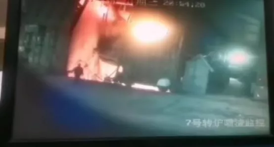 视频中,一个男人独自走到正在运作的高温炉边徘徊许久,最后纵身一跃,跳了进去。