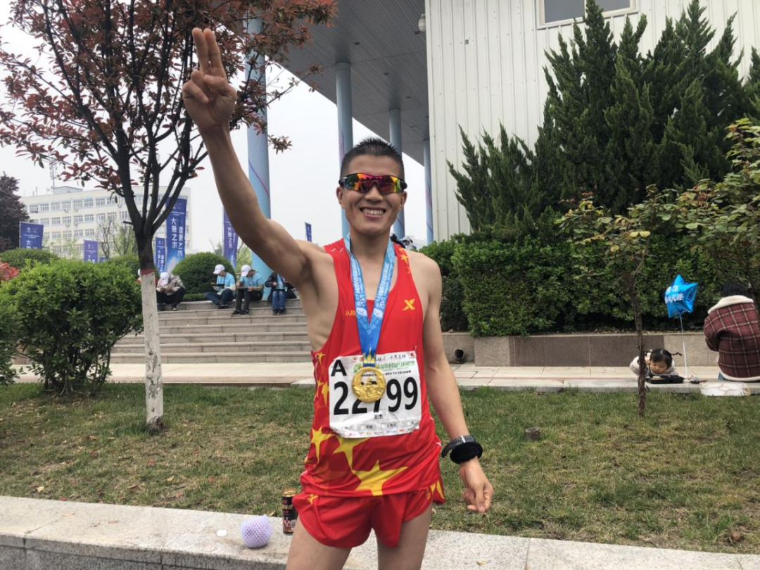 赛道上跑的时候,身边一个参赛人员有快要晕倒的迹象,我背着他走出赛道,送到了休息区恢复。重新跑在路上的时候,虽然慢了几分钟,但我不后悔。我是跑者,也是人民警察,任何时候,我都是人民卫士!