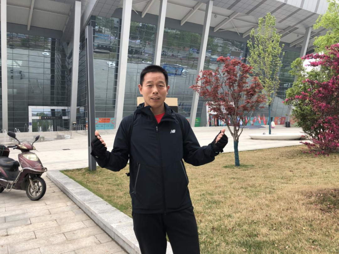 一个老大爷,60多岁了,跑了6个多小时,还在跑……