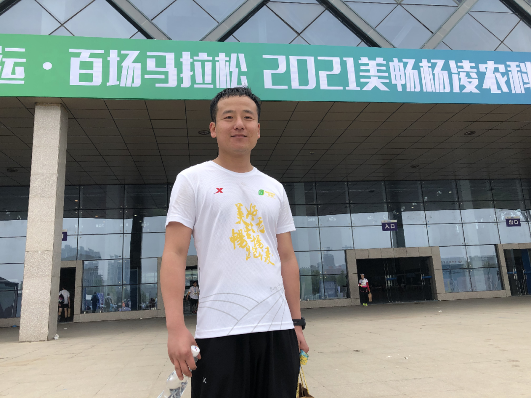 我一直都坚持跑马拉松,今天身体不舒服,跑不成,但我还是坚持要来杨凌。