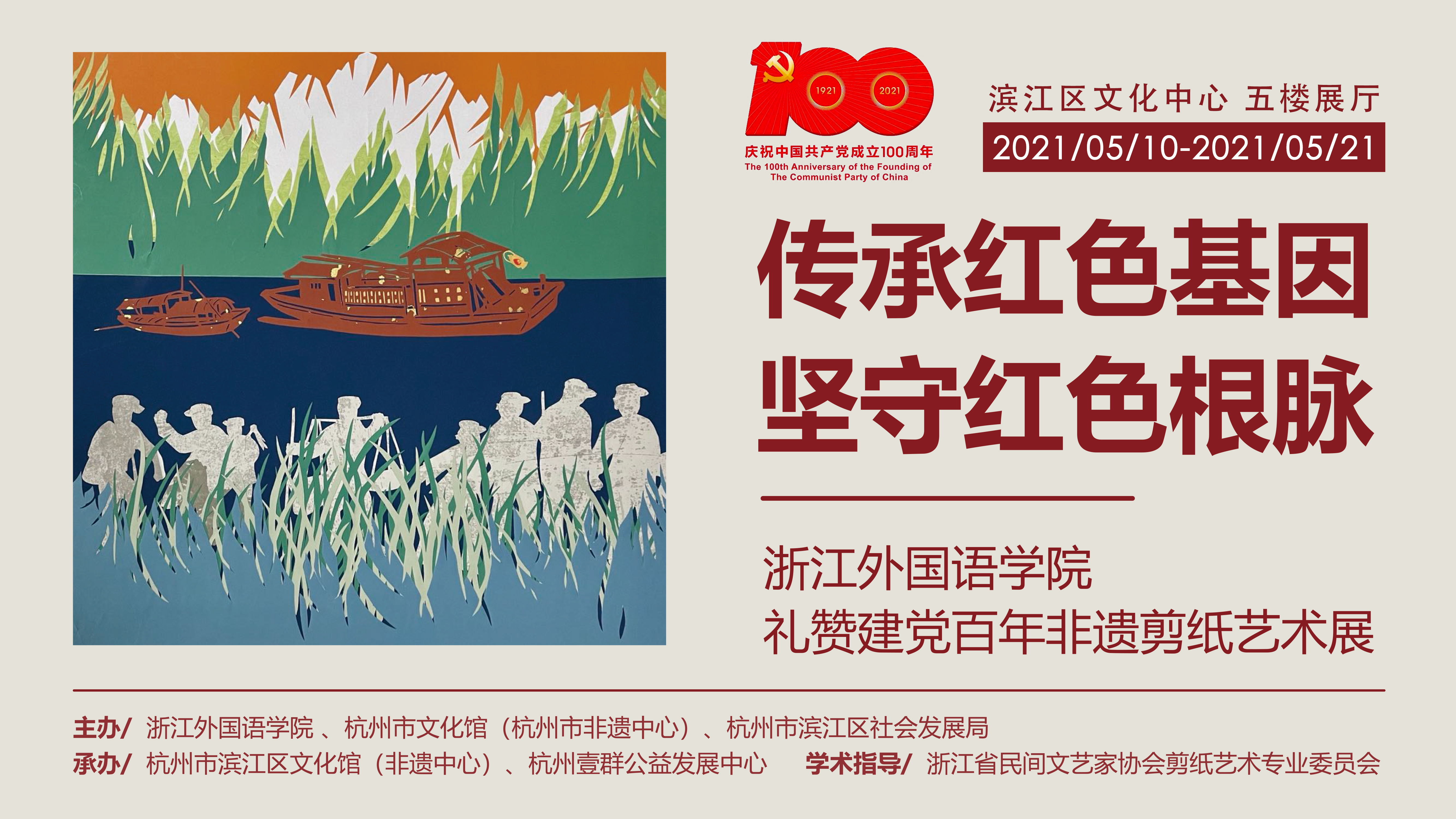 5月10日上午,由浙江外国语学院、杭州市文化馆(杭州市非遗中心)、杭州市滨江区社会发展局、杭州壹群公益发展中心联合举办,浙江省民间文艺家协会剪纸艺术专业委员会作学术指导的一场具有特殊意义的“传承红色基因,坚守红色根脉”——礼赞建党百年非遗剪纸艺术展在杭州市滨江区文化中心五楼展厅举行启动仪式。