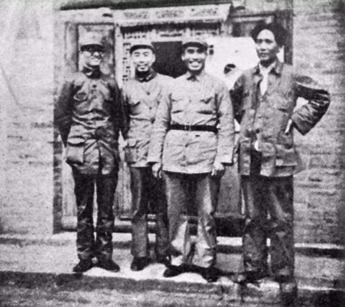 斯诺拍摄的博古、周恩来、朱德、毛泽东