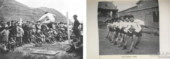 斯诺拍摄的“红军战士在跳高”和红军剧社演员