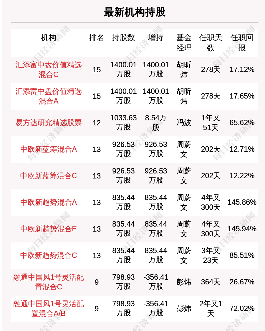 最新披露的部分基金持股: