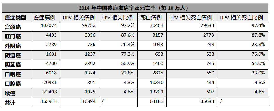HPV相关癌症发病率及死亡率,数据来源于参考文献13