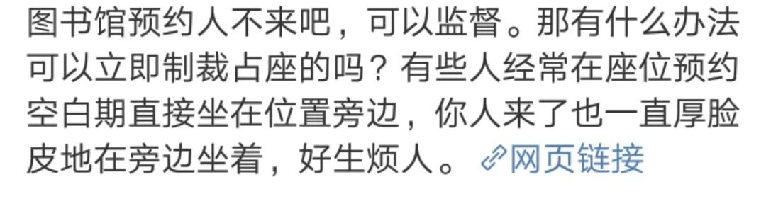 其中,呼声最高的困扰便是对公共资源的浪费。由于很多人在占得座位后实际上最终也并没有亲临现场学习,导致原本有限的场地和书桌资源被白白消耗掉,从而使得真正有使用需求的同学只能望“桌”兴叹。