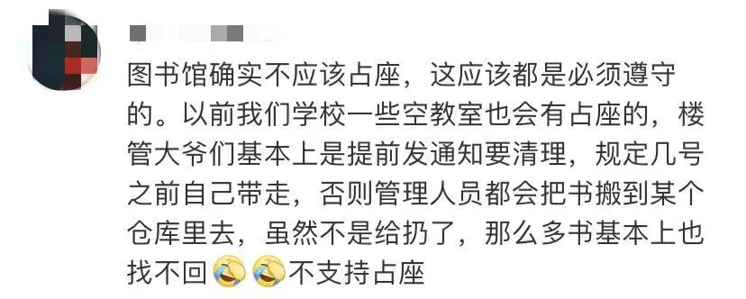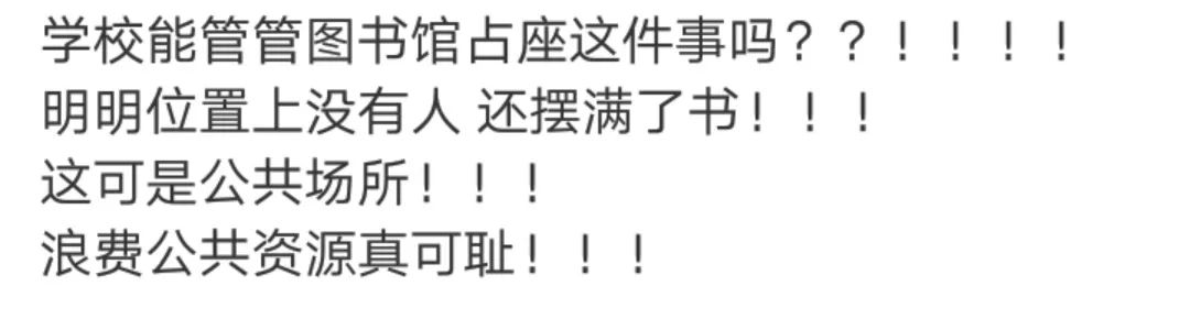 在学校图书馆早已张贴出通告、不允许同学们将书籍放在桌子上占座的前提下,面对扔书这一做法,网友们议论纷纷。