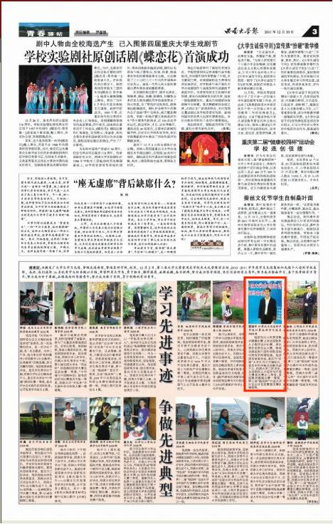 黄国平作为先进典型曾登上2011年12月30日西南大学校报。