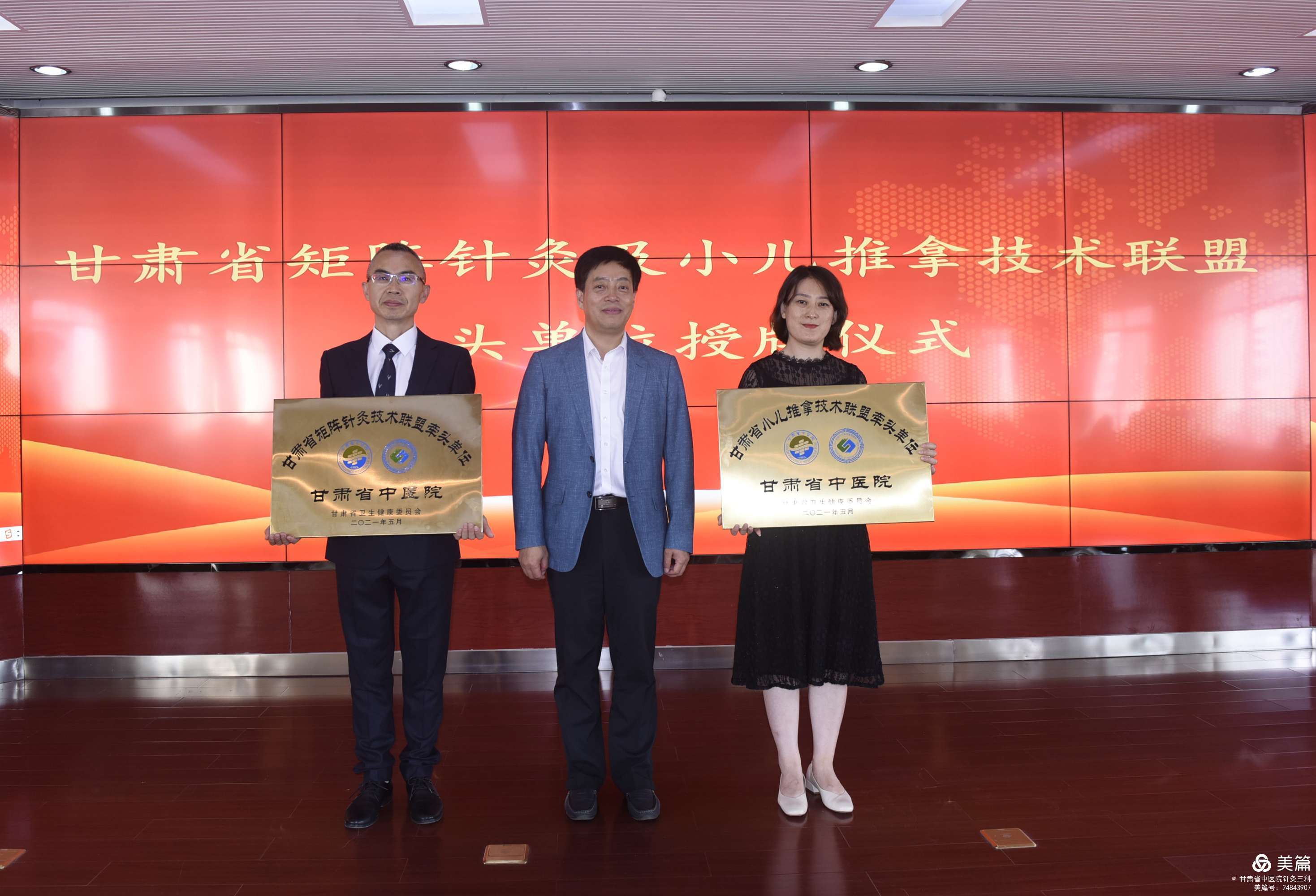 甘肃省中医院针灸三科,主任赵霞,副主任王智明为联盟成员单位进行授牌仪式