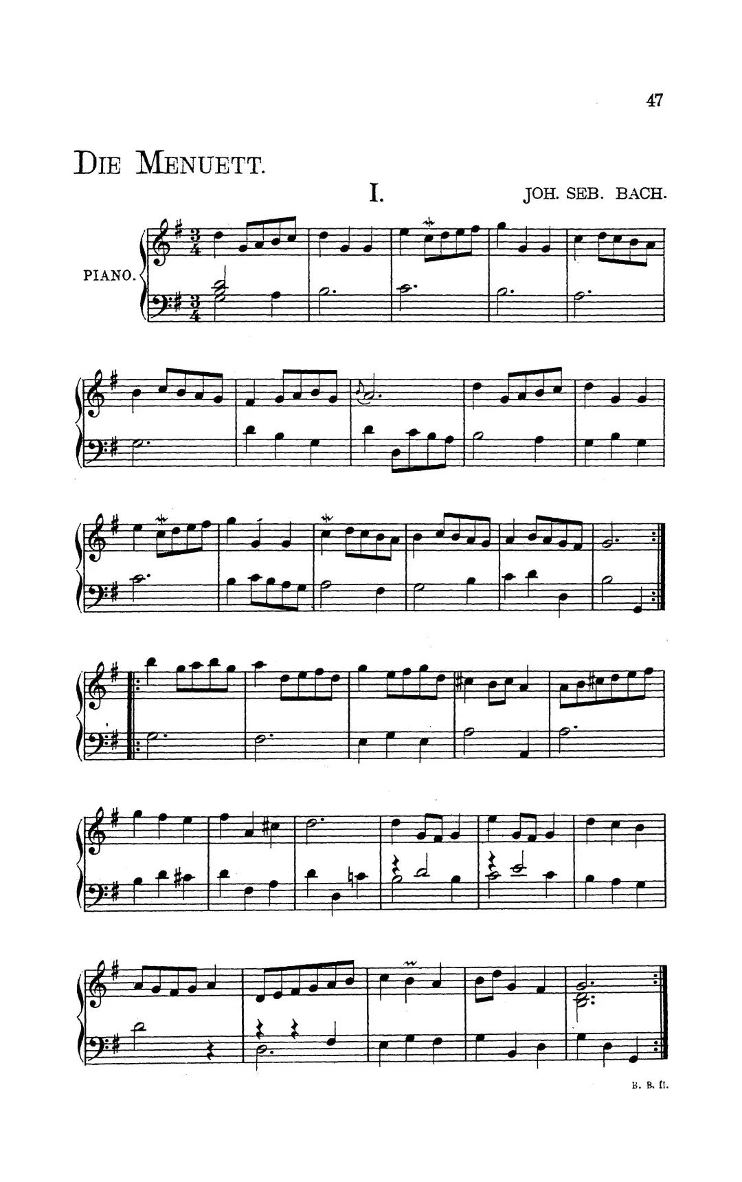 我们大家最熟悉的这首G大调的小步舞曲是出自《致安娜.玛格丽娜古钢琴小品集》,那是巴赫献给他第二任妻子安娜的一部杰出作品。