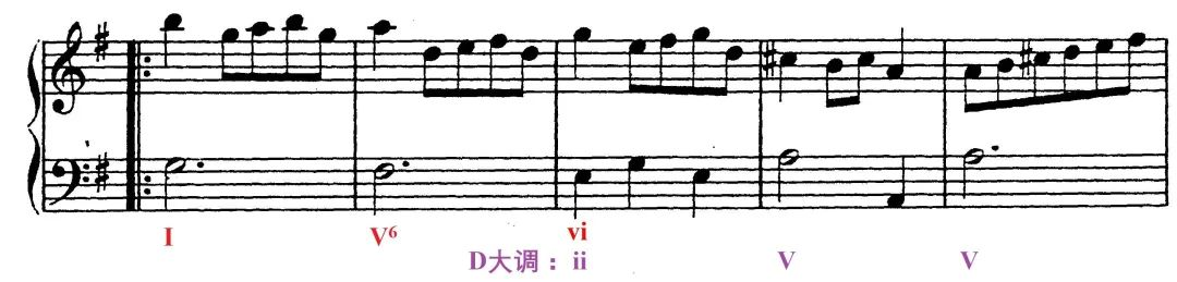I(主和弦原位)- V6(属和弦第一转位)- vi(下中和弦原位)