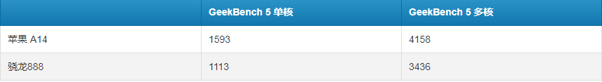 就目前而言,没有关于苹果 A15 芯片的任何基准测试,但我们为您提供了以下2020 年A14 芯片与2021年最快的 Android 芯片骁龙888的跑分对比。