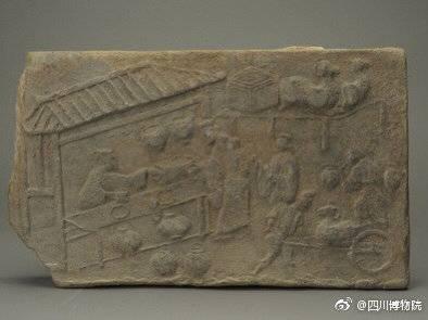 例如四川博物院的东汉酿酒画像砖,画面中,一人衣袖高挽立于釜边酿酒,绾髻女子似在指挥,还有酒客用独轮车推着酒瓮而去,神还原了司马相如与卓文君“卖酒创业”的故事。