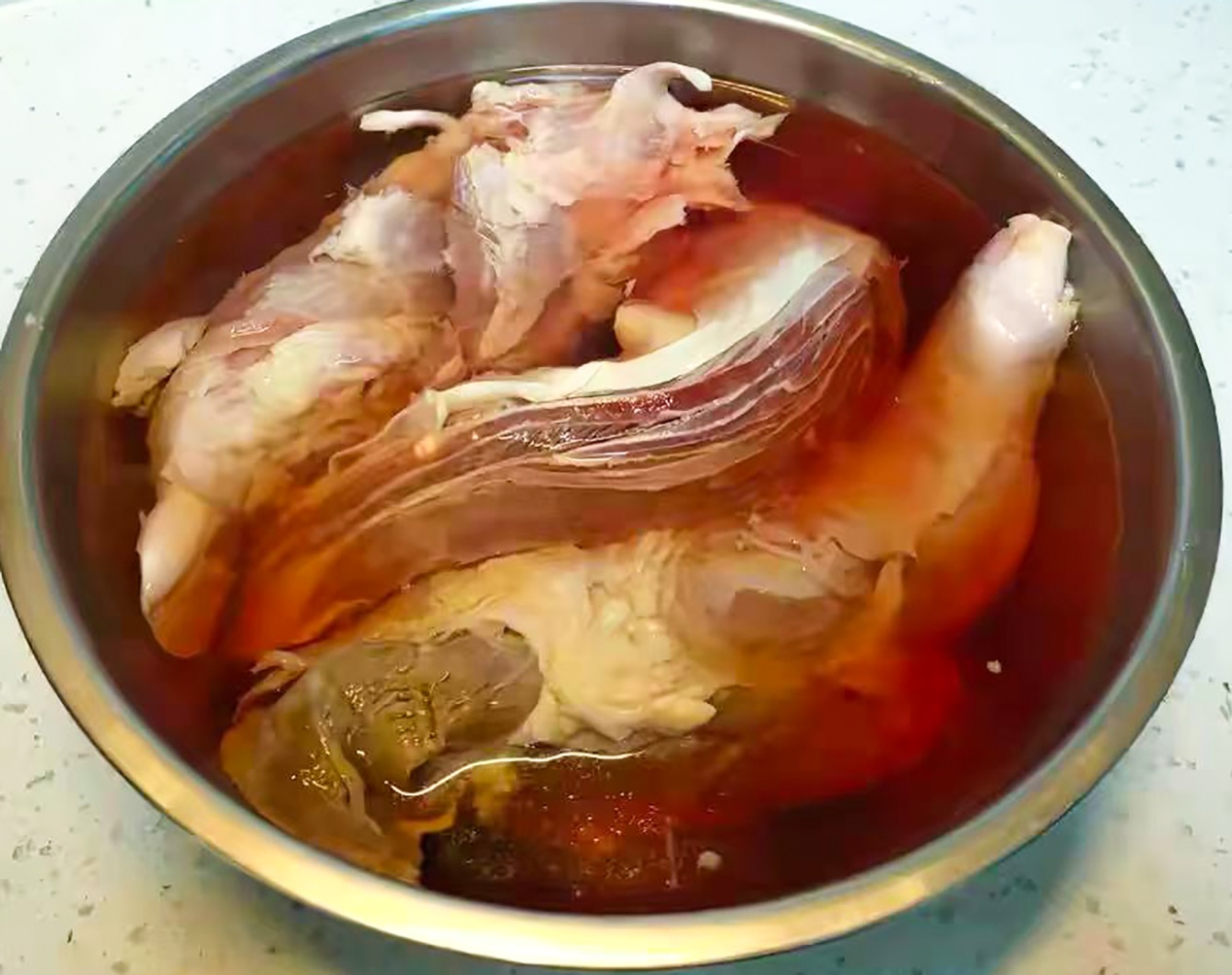 我们买牛腱子肉的时候一定要挑经络比较多的,这样的牛肉做出来会更加有嚼劲,但是新鲜的牛腱子肉油脂会比较多,我们可以把上面的油先割掉。再将它放在清水里面浸泡一小时左右,捞起来沥干水备用。