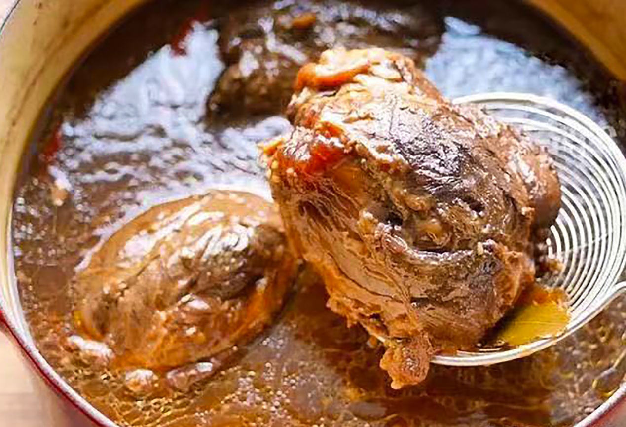 这时候的酱牛肉已经算是做好啦,只要把它捞出来沥干水分。