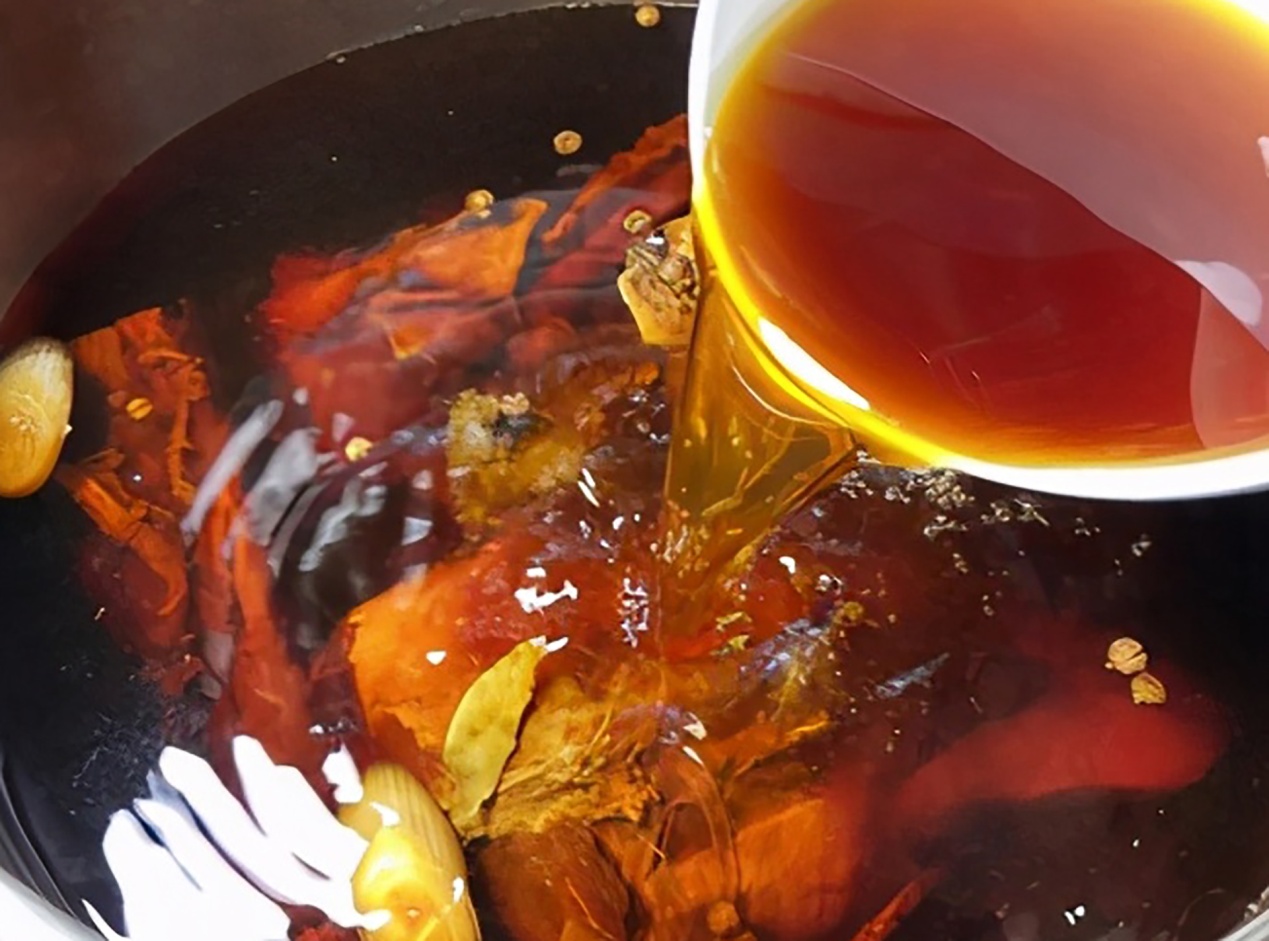 4.开大火煮开,十几分钟后调成小火慢慢熬制,这样牛肉就能充分入味了。熬制两小时左右不要马上捞起,留着它在锅里面浸泡一个晚上,让酱汁完全渗透进牛肉里面。