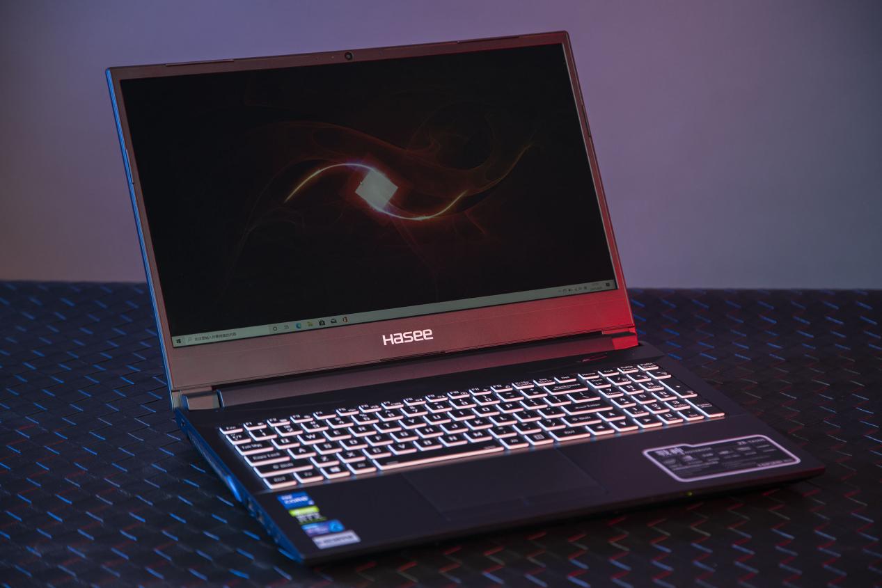 15.6英寸1920*1080分辨率的IPS屏采用三边窄边设计,支持144Hz的高刷新率。相对来讲带有“Hasee”Logo的下巴略显粗壮了些,不过整体的屏占比还是比较高的。屏幕上方居中位置设计有摄像头、摄像头指示灯以及阵列式麦克风用来视频会议也十分方便。