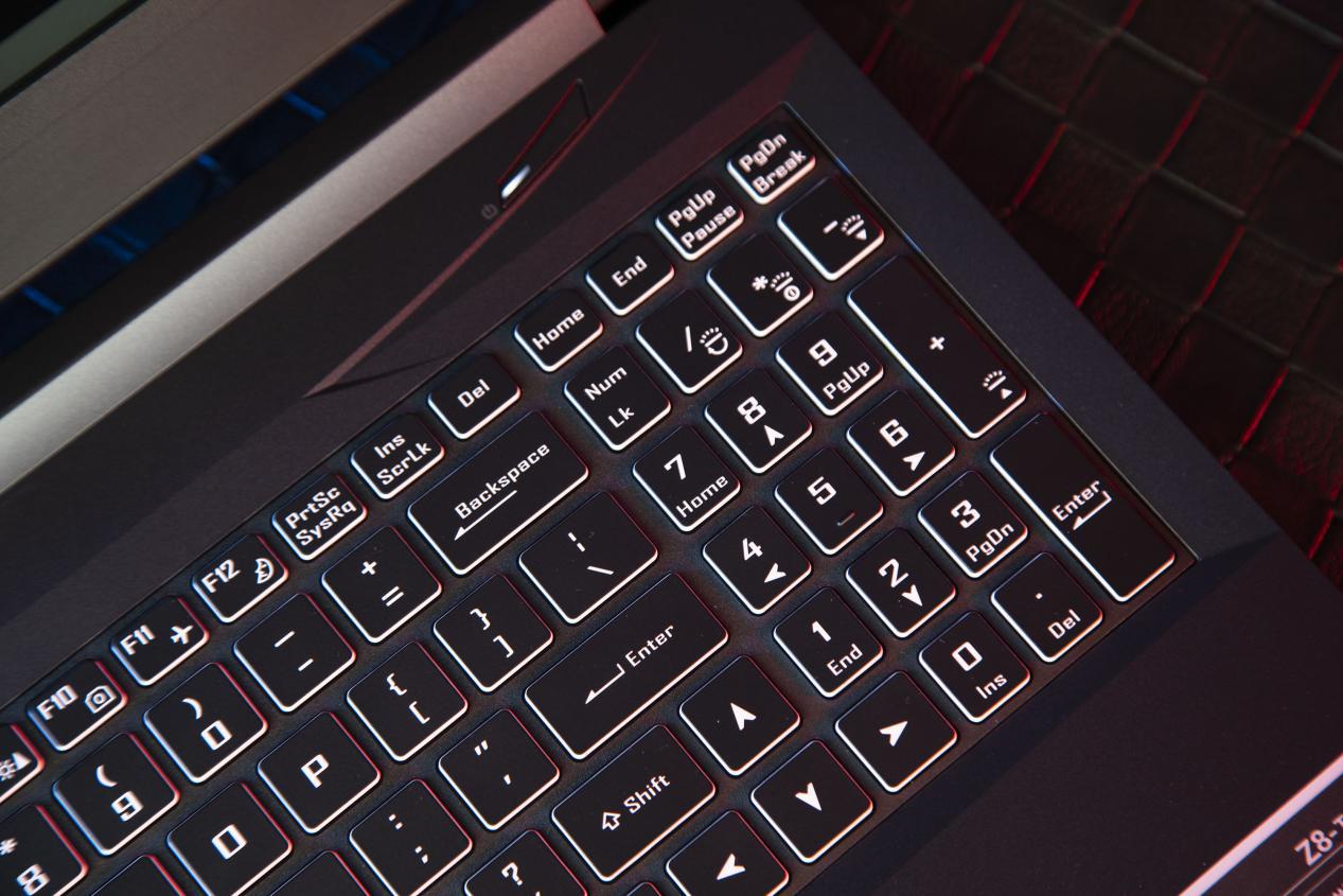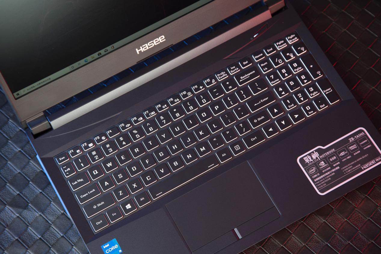 战神Z8-TA5NS的键盘为全尺寸单区背光键盘,完整的小键盘对于很多人来讲还是很重要的,能够有不少的效率提升。键盘的手感不错,回弹力度刚刚好,也比较耐磨,没那么娇气。