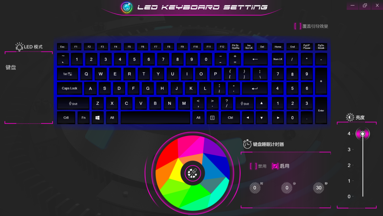 灯光可以通过系统内置的控制中心3.0非常方便地进行切换,同样通过它我们还可以很方便的调整电脑预设模式、风扇转速和组合键功能等等。