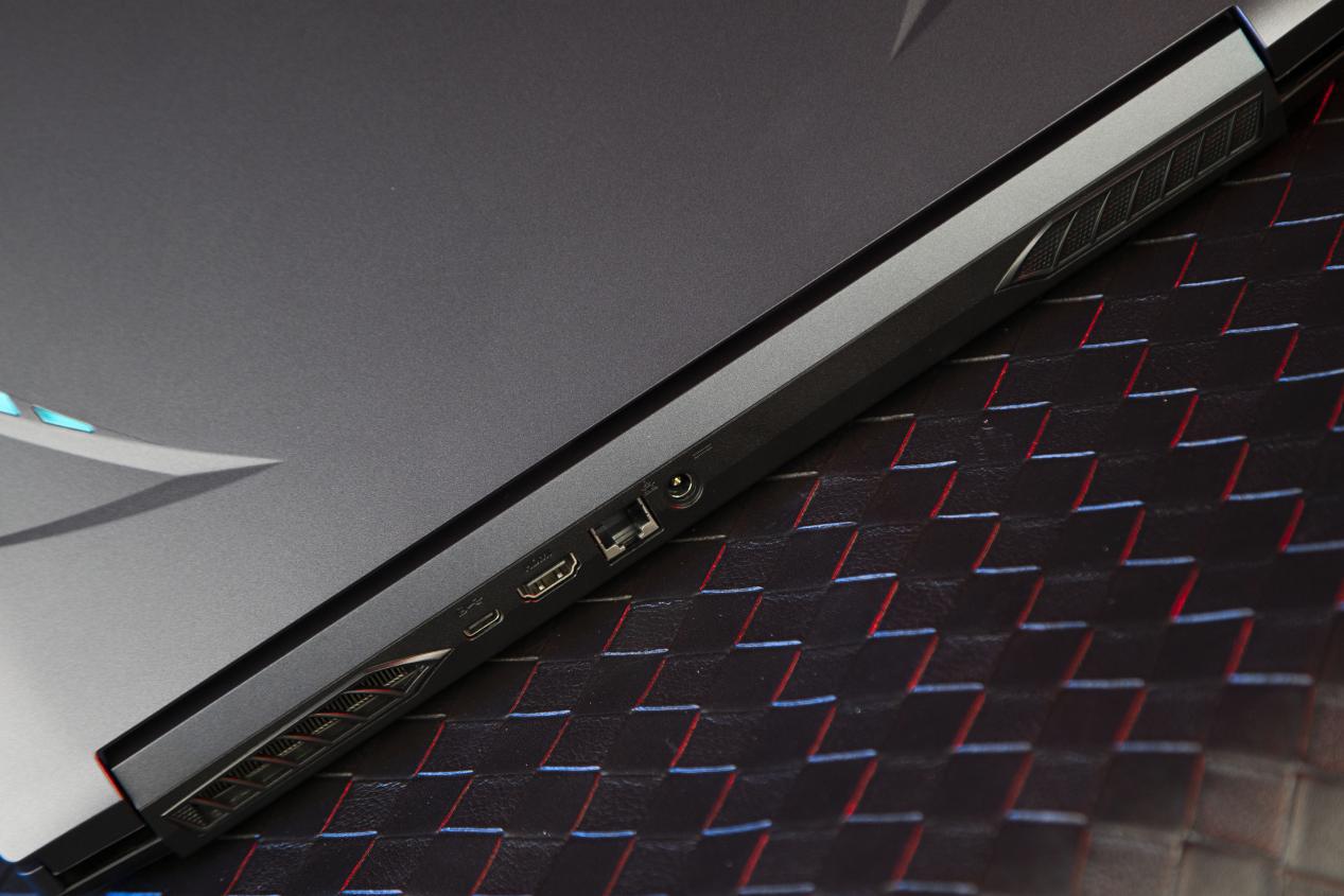 战神Z8-TA5NS采用包括双风扇4铜管的CPU和显卡分体式散热设计,从左、右和后方一共可以看到四个出风口,主要的接口也分散在这三个方向上。左侧接口依次为防盗锁插孔、USB 3.2、USB2.0、麦克风端口和耳麦二合一端口。