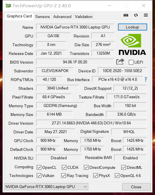 RTX 3060移动显卡采用GA 106核心,三星8nm工艺,配备3840个流处理器,6GB GDDR6显存,显存位宽为192bit,显存总带宽为336GB/s。今年有了RTX 3050系列垫底,RTX 3060不再是光追门槛,定位的提升,也让很多人对它的性能表现充满了期待。
