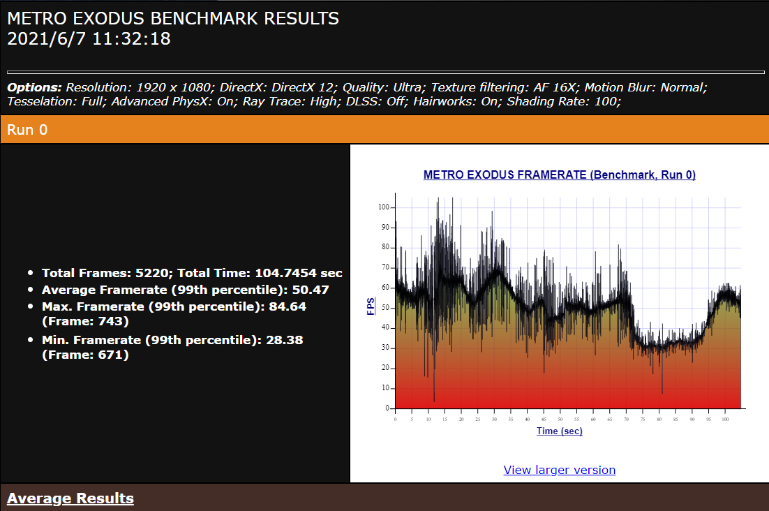 光追游戏方面,《地铁:离去》在超高画质下,光线追踪开到高,战神Z8-TA5NS依然能有50.47帧的平均帧数成绩。同样追求更高帧数的朋友,可以通过在画质和光追效果中适当妥协一下,达到自己的预期效果。