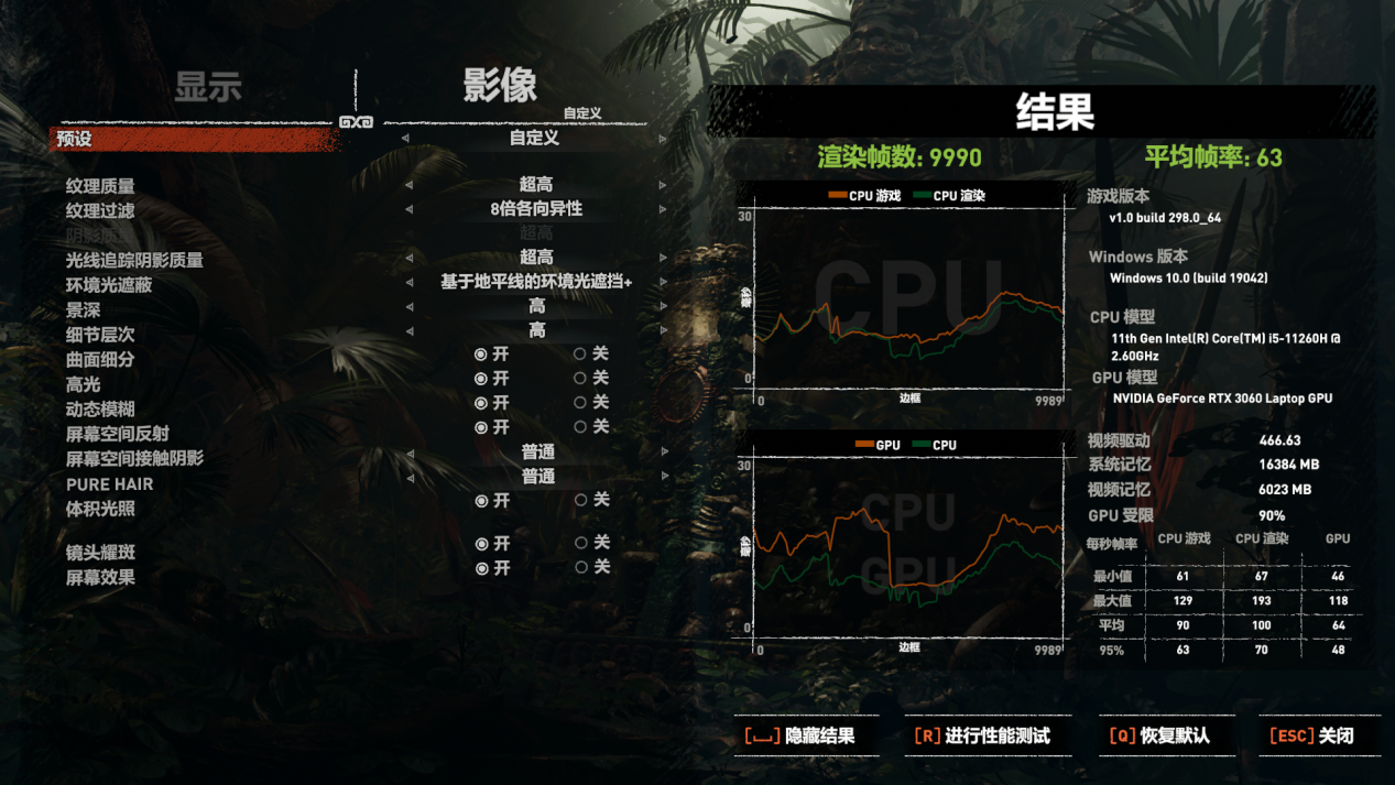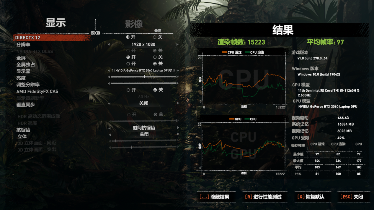 《古墓丽影:暗影》在最高画质、不开光追的环境下,战神Z8-TA5NS的平均帧数为97帧,要高出搭载RTX 2060的游戏本10帧以上。