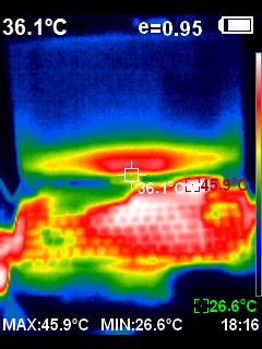 与内部较高的温度相对应的,是其相对也较高的表面温度。使用热成像仪进行测试,战神Z8-TA5NS在双烤后表面温度最高达到了45.9℃,要比此前我们评测的战神Z7-TA7NS低上近10℃,还是不错的。实际触感上,手指也会感觉到一点点的热量,不过距离烫手的级别还很远。精心的设计之下,即使在极限环境中,我们玩游戏时最常用的“WASD”几个按键附近的温度还是比较低的,能够保证一定的畅快手感。