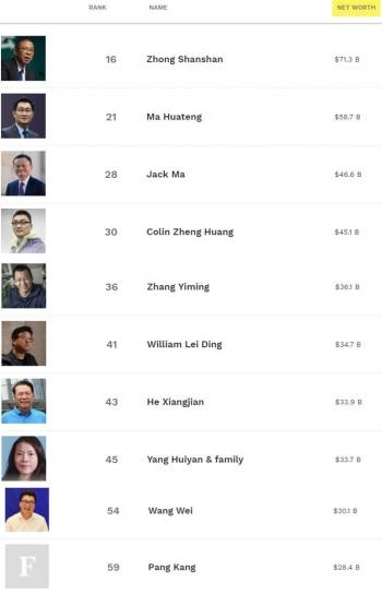 福布斯实时富豪榜(图中排名为全球排名) 来源:福布斯网站
