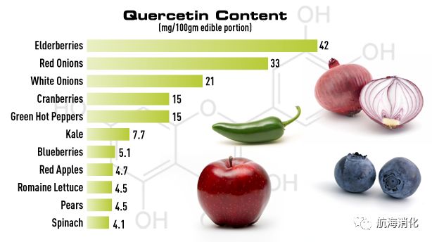 苹果、洋葱、葡萄酒、绿茶等都是生物类黄酮槲皮素最好的天然来源。洋葱是蔬菜中槲皮素的最佳天然来源之一,也是最不可能含杀虫剂和其他潜在致癌化学物质的蔬菜。