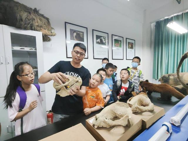 “这个标本是滇金丝猴,是我们中国特有物种,分布在川滇藏三省区交界处。”在动物学实验教学示范中心,生态学研究生阮涛向小朋友们介绍了经济兽类标本,小朋友们看得兴致勃勃,不停提出心中疑问。孔雀、丹顶鹤、秃鹰等鸟类标本,也让小朋友们直呼精彩。