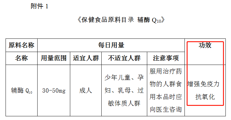 而且,在2020年12月国家市场监管总局联合卫健委等发布的公告中,将辅酶Q10功效归纳为两点:增强免疫力和抗氧化,并未认可其“保护心脏”的作用。