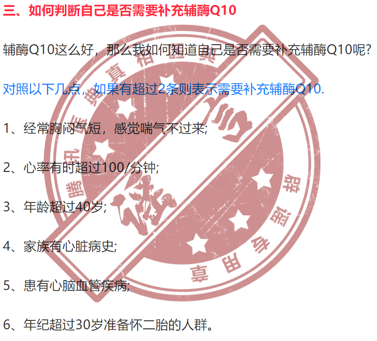 因此,有文章说什么“经常胸闷气短,感觉喘气不过来就是缺辅酶Q10”,纯属胡说八道!