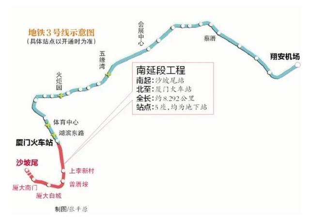 3号线南延段工程南起沙坡尾站,北至厦门火车站。