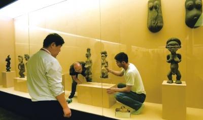 博物馆工作人员正在进行非洲展品布展河南商报记者邓万里/摄