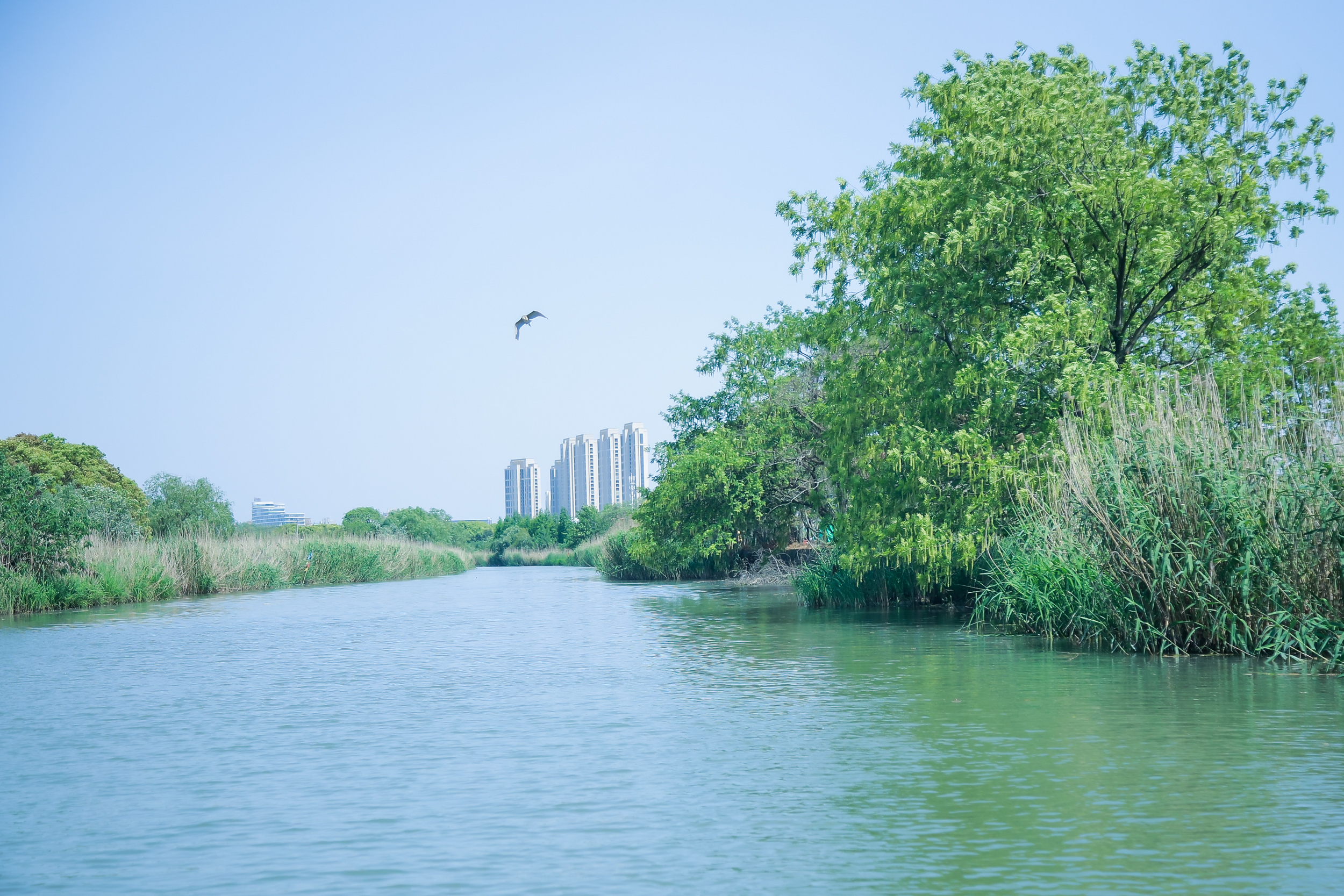 从长田漾湿地蜿蜒的河道出发,画舫悠悠地行驶在湖光山色间,穿过接天的芦苇丛,仿佛拉开太湖的面纱,江南湖景如同一幅画卷徐徐展开。