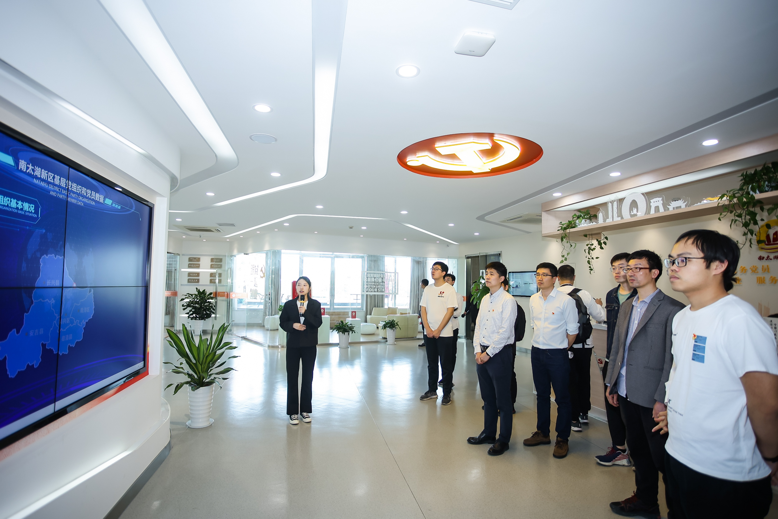 在湖州南太湖新区党群服务中心,电子屏上显示的南太湖新旧照片,向同学们展示了近几年来南太湖翻天覆地的变化:荒芜的矿山已经树木葱郁,湖边的滩涂建起了自行车道,破旧的工厂改建成湖州影视城,曾经被渔船堵塞的河道变得干净整洁……