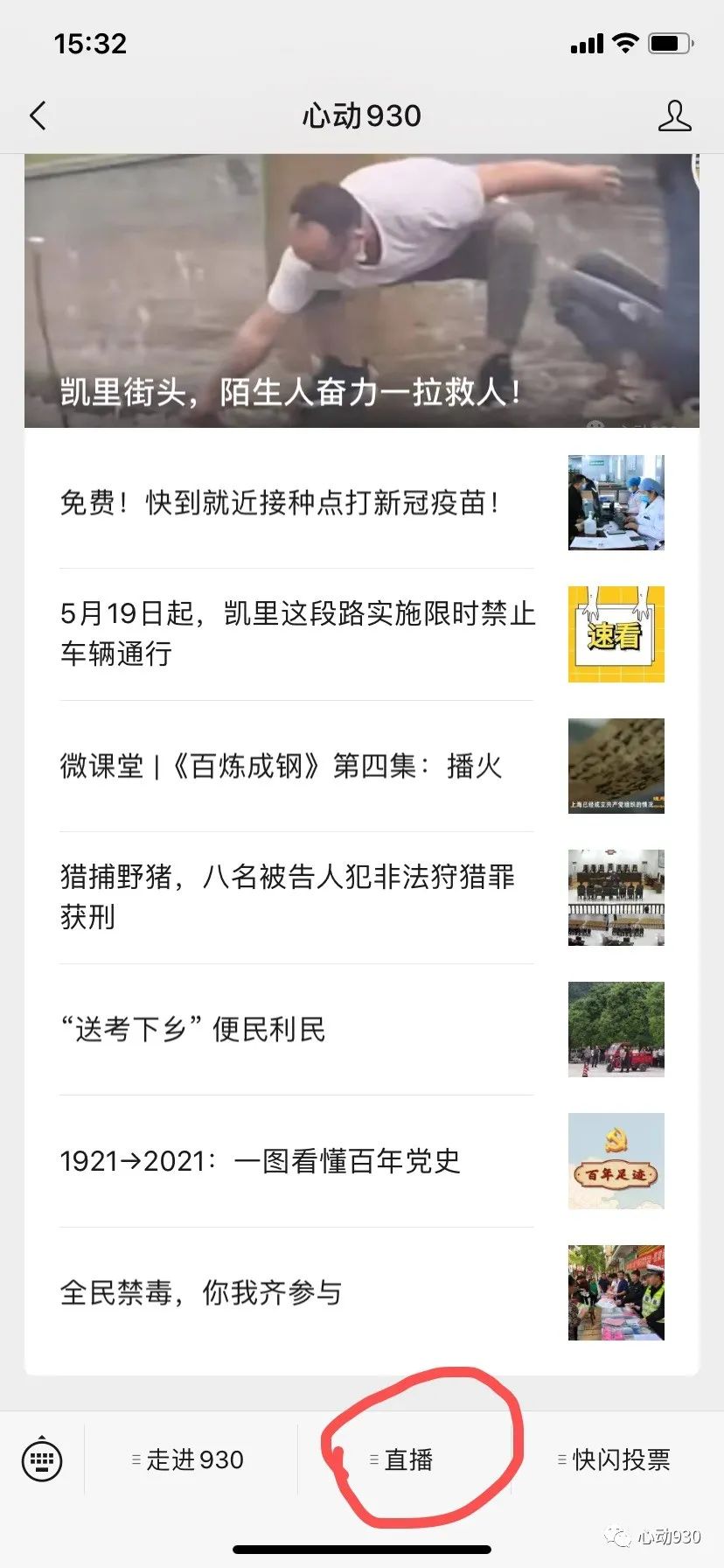 一、关注凯里市融媒体中心官方微信“心动930”微信公众号。