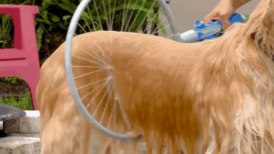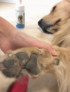 然后先把狗狗的爪子浸泡在凉水里,加强散热,再用水给狗狗冲凉,降低体温。