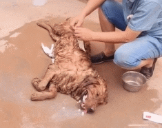 然后给狗狗喝常温水,要少量多次。如果狗狗已经失去意识或者不愿意喝水,不要强灌,以免呛水,可以用湿毛巾给狗狗湿润舌头。
