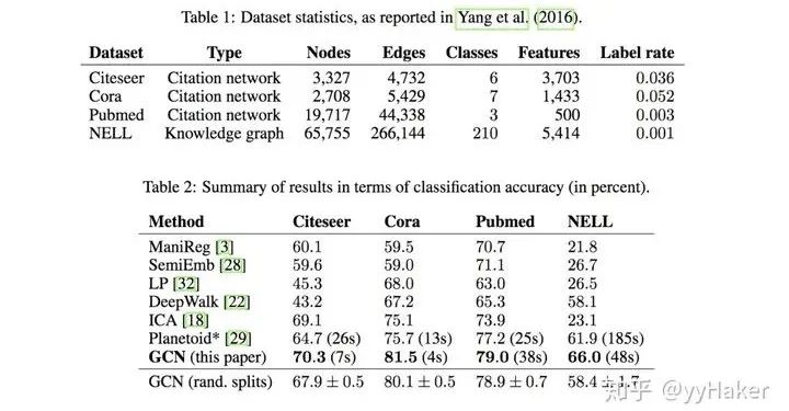那么GCN的效果如何呢?作者将GCN放到节点分类任务上,分别在Citeseer、Cora、Pubmed、NELL等数据集上进行实验,相比于传统方法提升还是很显著的,这很有可能是得益于GCN善于编码图的结构信息,能够学习到更好的节点表示。