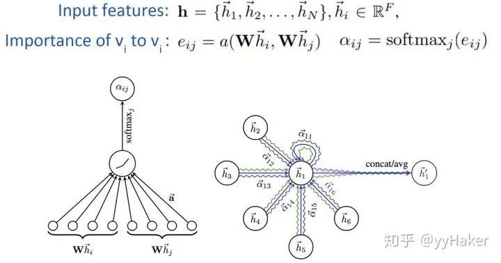为了解决GNN聚合邻居节点的时候没有考虑到不同的邻居节点重要性不同的问题,GAT借鉴了Transformer的idea,引入masked self-attention机制,在计算图中的每个节点的表示的时候,会根据邻居节点特征的不同来为其分配不同的权值。