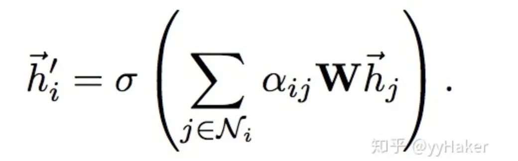 计算完attention之后,就可以得到某个节点聚合其邻居节点信息的新的表示,计算过程如下: